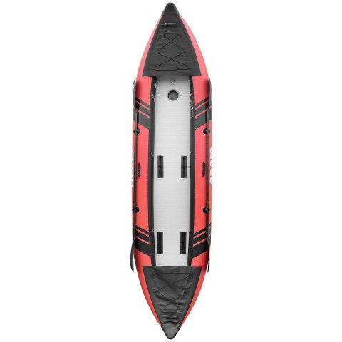 Zaletą tego nadmuchiwanego kajaka jest sztywna podłoga, wygodne siedziska oraz wiele innych udogodnień takich jak regulowana odległość podnóżków, uchwyt na wiosła, gumy na bagaż czy specjalne uchwyty do przenoszenia. W zestawie znajdziesz dodatkowo pokrowiec na kajak, zestaw naprawczy, pompkę do nadmuchiwania oraz wiosła.