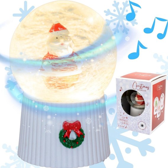 Zamknij magię Bożego Narodzenia w szklanej kuli — zamów KULĘ ŚNIEŻNĄ GRAJĄCĄ 147MM LED Z MIKOŁAJEM