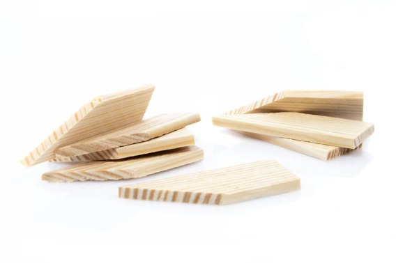 Kliny do blejtram komplet 8 sztuk Drewniane kliny rozporowe do wzmocnienia konstrukcji blejtram, które posiadają specjalnie wyfrezowane na nie otwory. Do stabilizacji każdej ramki potrzeba 8 klinów.