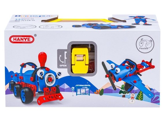 • Klocki ELASTYCZNE Konstrukcyjne, Maszyny, Pojazdy, Auto, Samochód, Samolot, Pociąg Do Rozkręcania I Skręcania 6w1 142 El.