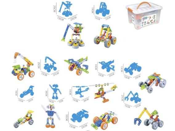 Jest to zabawka do samodzielnego zaprojektowania i zbudowania. Zestaw składa się z wielu kolorowych, plastikowych klocków i pozwala na dowolne budowanie wszystkiego co wymyśli dziecko. Zabawka, która przemieni dziecko w małego architekta, pobudzi wyobraźnię i pomoże rozwinąć zdolności konstruowania.