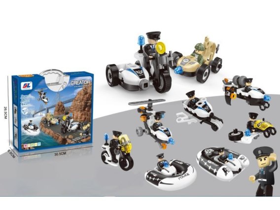 Klocki Konstrukcyjne 161 El. POLICJA, ZESTAW POLICYJNY, Motocykl, Ponton, Samochód Do Rozkręcania I Skręcania 8w1