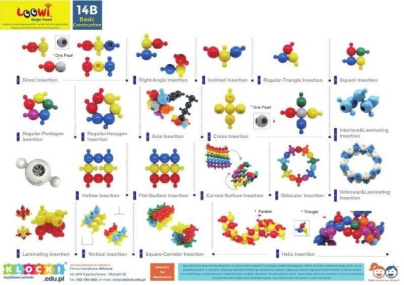 Zestaw edukacyjny - Klocki zaprojektowane tak, aby stymulować rozwój dziecka. Maluch z łatwością połączy ze sobą kolorowe kulki wykonane z wysokiej jakości materiału i dostosowane wielkością do rączek. W zestawie 20 instrukcji krok po kroku.