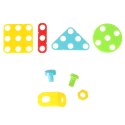Do wkręcania śrubek służy zabawkowy śrubokręt i wkrętarka zasilana bateriami. Jest to idealne urozmaicenie zabawy i możliwość wcielenia się w młodego majsterkowicza.
