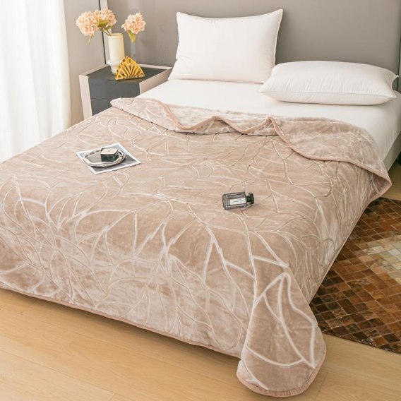 Koc akrylowy 160x200 Liv beżowy liście tłoczony narzuta dekoracyjna
