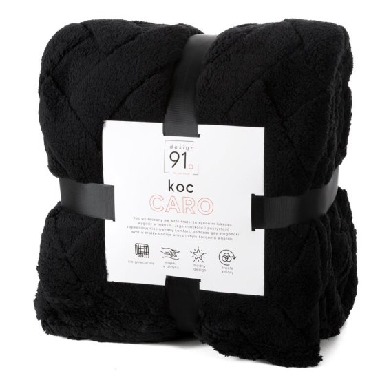 • Koc narzuta 150x200 Caro czarny z mikrofibry D91