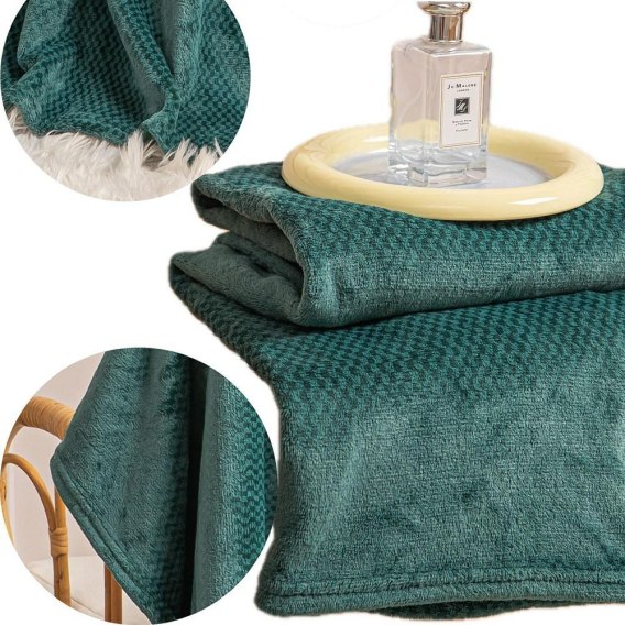 Koc narzuta 150x200 Willy zielony butelkowy z mikrofibry I23