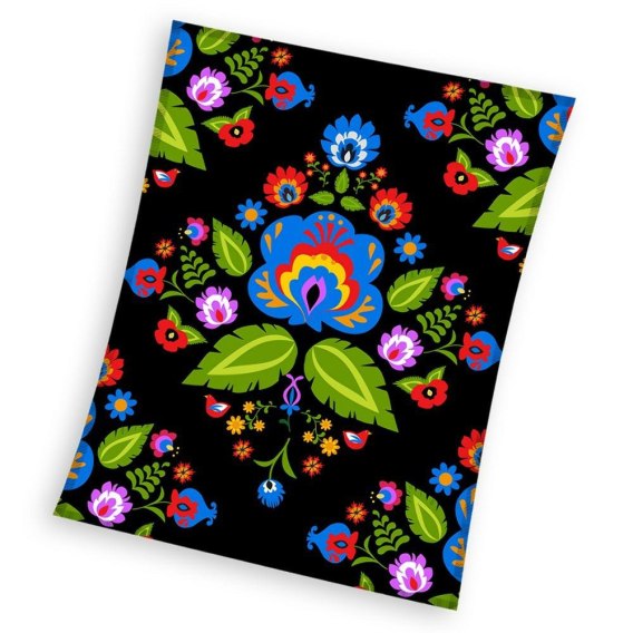 Koc narzuta z mikrofibry 150x200 Coral czarny kolorowy łowicki kwiaty C23