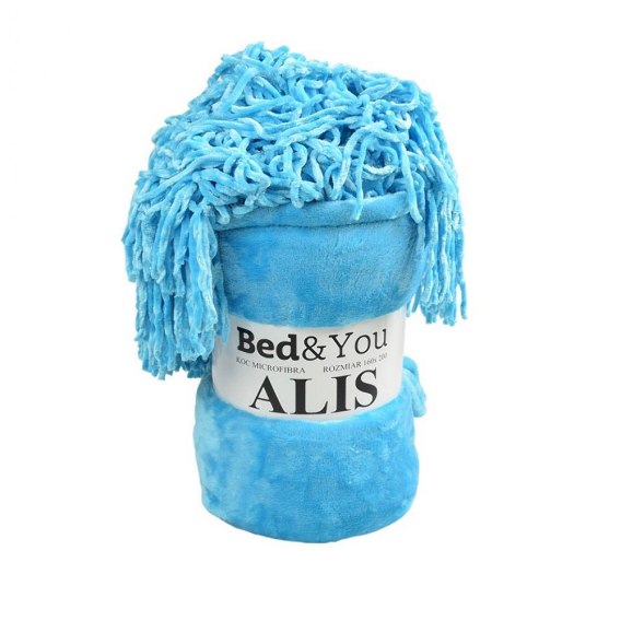 Koc narzuta z mikrofibry 200x220 Alis turkusowy frędzle
