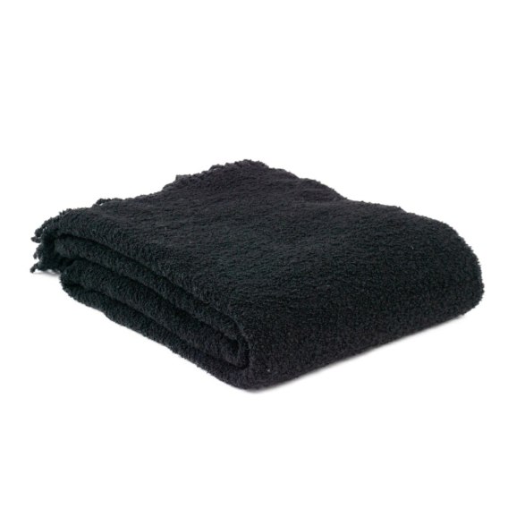 Koc wełniany merynos Bukle 140x200 czarny z frędzlami