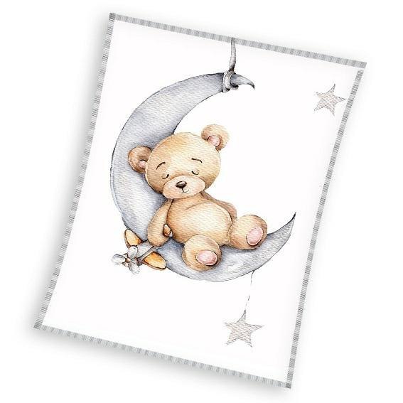 Koc z mikrofibry 110x140 Miś śpiący biały szary 4104 C23