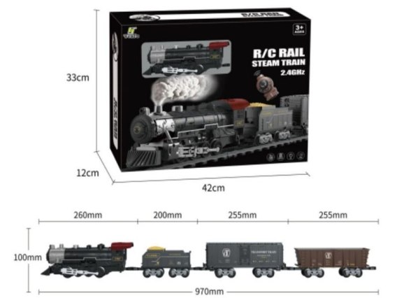 - puszcza parę - po wlaniu wody w odpowiednie miejsce i włączeniu opcji pary na pilocie zobaczymy prawdziwą parę, która unosi się z komina lokomotywy!