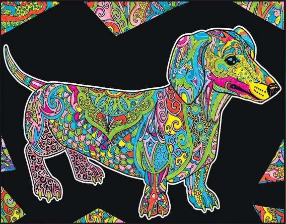 Wypukłe linie ułatwiają nie wychodzenie za linie, a na głębokiej matowej czerni nie widać drobnych potknięć przy kolorowaniu. Welwet nałożony jest na papier przyklejony do sztywnej tektury, dzięki czemu obraz nie wymaga ramki jeśli zdecydujemy się go powiesić na ścianie.