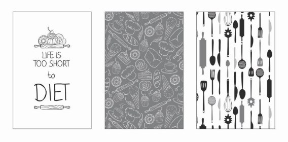 • Komplet ścierek kuchennych 3 szt. 40x60 biały szary ciasteczka sztućce Kuke 013 bawełniany Faro