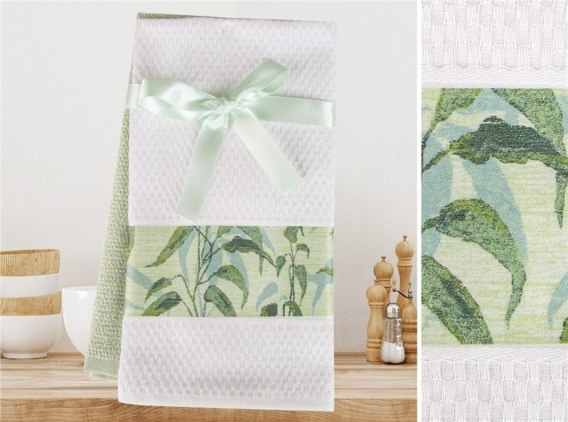 Komplet ścierek kuchennych Amori 40x60 2szt biały zielony 3D Greno