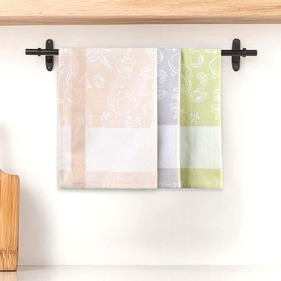 Komplet dekoracyjnych, żakardowych ścierek kuchennych, łączący wysoką jakość wykonania z estetycznym designem. Wykonane w 100% z bawełny, cechują się wysoką chłonnością, trwałością i odpornością na częste pranie. Przeznaczone do prania w temperaturze do 60o C. Idealne do codziennego użytku w każdej kuchni. Wykończone podwinięciem i pakowane jako zestaw 3szt w jednym wzorze i różnych kolorach.