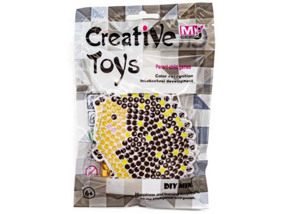 Jest to zabawka do samodzielnego zbudowania. Zestaw składa się z wielu kolorowych, plastikowych koralików oraz szablonu z konkretnym wzorem. Super zestaw zapewni każdemu dziecku mnóstwo wesołej zabawy.