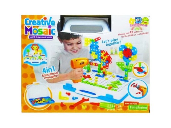Kreatywna Mozaika, Układanka, Klocki, Wkrętarka Śrubki W Walizce 237 El