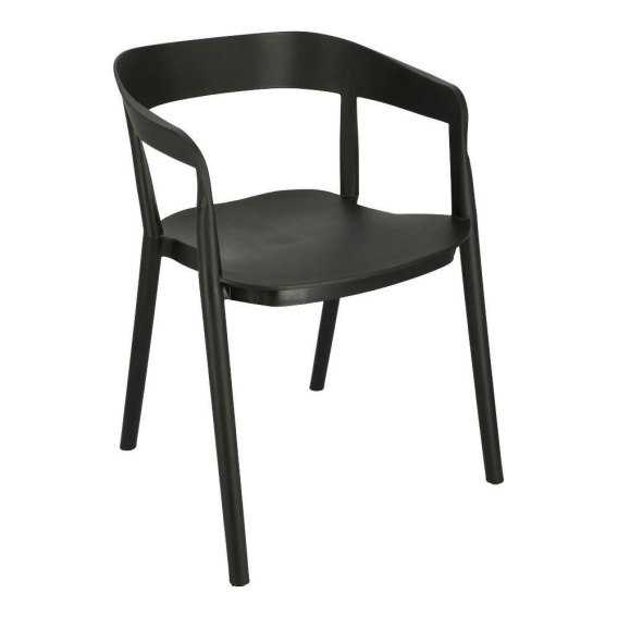 Krzesło Bow to nowoczesne polipropylenowe krzesło. Oparcie krzesła delikatnie przechodzi w podłokietniki tworząc przy tym wytrzymałą konstrukcję. Całe krzesło zostało zrobione z tworzywa w kolorze czarnym. Wsporniki łączące siedzisko z oparciem wyglądają jakby były przedłużeniem nóg krzesła. Krzesła się sztaplują. Max. obciążenie: 120kg. Wymiary kartonu: 67x58x90cm Max. ilość szt. w kartonie:4