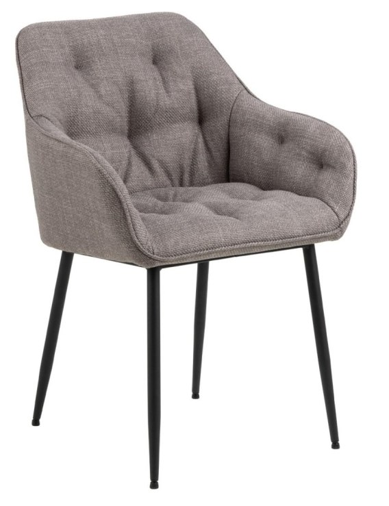 Krzesło Brooke jest krzesłem tapicerowanym miękką tkaniną Basel fabric light grey-brown 34. Krzesło posiada idealnie wyprofilowane podłokietniki, które tworzą z siedziskiem i oparciem spójną całość. Oparcie krzesła zostało ozdobione pikowaniem, które dodaje mu stylu. Podstawą krzesła są malowane proszkowo na czarno metalowe nogi. Maksymalne obciążenie: 120 kg. Waga Krzesła: 8,8 kg Wysokość oparcia: 37cm Szerokość siedziska: 41cm Głębokość siedziska: 40,5cm Ilość kartonów: 1 Wymiary kartonów: 61x58x52,5cm