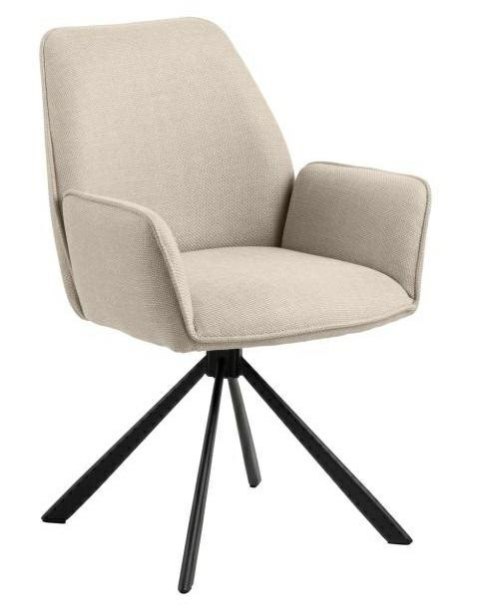 Dzięki minimalistycznej budowie, krzesło Genda sprawdzi się do jadalni w stylu japandi, boho lub skandi. Siedzisko tapicerowane ciekawą, grubo plecioną tkaniną z efektem dwóch odcieni w zalęzności jak pada światło na mebel. Gruba lamówka na obrzeżach oparcia, podłokietników i siedziska dodaje eleganckiego wyglądu. Nowoczesna czarna 4-gwiazdkowa podstawa z obrotowym mechanizmem dopełnia nowoczesnego charakteru krzesła. Podstawa krzesła malowana proszkowo na czarny mat. Certyfikat FSC Wymaga montażu. Max. obciążenie 110 kg. Szerokość siedziska: 44 cm głębokość siedziska: 46 cm Wymiary kartonu: 62x62x57,2 cm. Max. 2 szt w kartonie