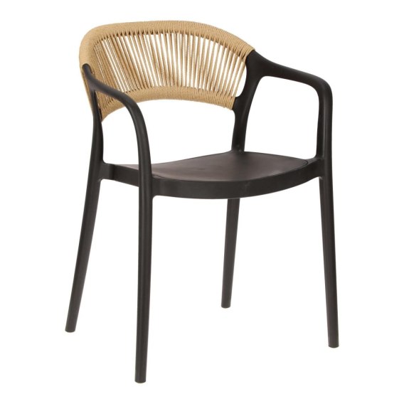 Krzesło Osma to połączenie wytrzymałego na promienie UV polipropylenu z plecionką ze sznura z tworzywa sztucznego (poliestru). Krzesło o wygodnym, lekko zaoblonym oparciu wyposażone zostało również w podłokietniki. Intrygujące oparcie jest nie tylko efektowne, ale również wygodne. Miękkie sznurki układają się pod kształt pleców. Max. obciążenie 120kg. Krzesło nie wymaga montażu. Krzesło sztapluje się. Maksymalne stosy 6szt Krzesło nadaje się do użytku na zewnątrz. Grubość nóg: 2,5cm Wysokosc podłokietnikó 68cm Głębokość siedziska 42,5cm Szerokośc siedziska 42cm Waga krzesła 4,5kg
