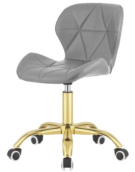 Krzesło obrotowe do biurka w kolorze szarym, model VASTO OFFICE PU z metalową chromowaną podstawą w kolorze złotym.