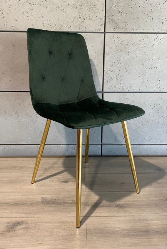 BORGO - Nowoczesne krzesło tapicerowane welurem z przeszyciami w romby, kolor ciemny zielony z srebrnymi nogami.