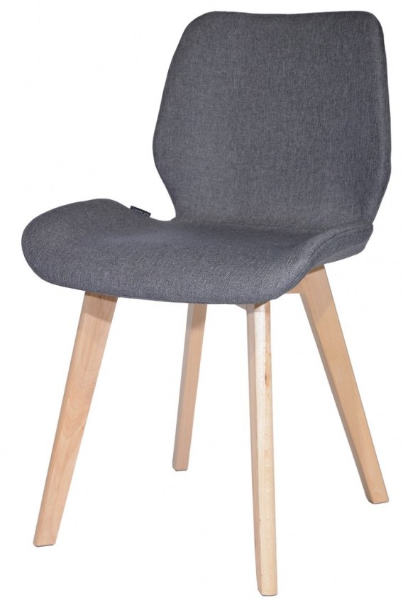 Nowoczesne, solidne i wygodne krzesło do salonu, kuchni, jadalni. Tapicerowane tkaniną w kolorze szarym. Nogi z drewna bukowego.