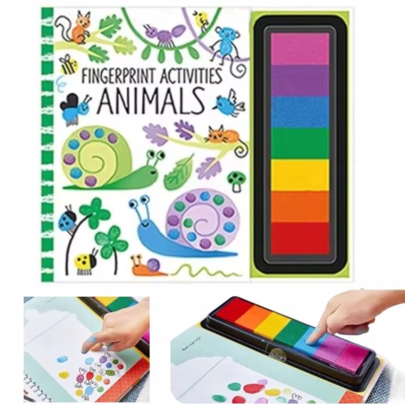 Fingerprint activities animals to aktywizująca książeczka zachęcająca do malowania palcami.  Zawiera wiele kreatywnych zadań do namalowania. Jest to świetny sposób na naukę poprzez zabawę dla Twojego dziecka. Już od najmłodszych lat pobudza wyobraźnie, kreatywność oraz usprawnia zdolności manualne. Edukacyjna zabawka, która rozwinie w dziecku zdolności plastyczne, które zaowocują w dalszej nauce w przedszkolu, a później w szkole. Książeczka w ładnych wielokolorowych odcieniach to idealny prezent dla każdego dziecka, które lubi rysować.