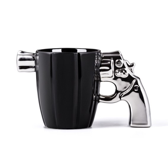 Mężczyzna potrzebuje trzech rzeczy do pełni szczęścia: ukochanej kobiety, jedzenia i poczucia władzy. Można powiedzieć, że każdy facet jest jak szeryf – musi pilnować porządku, czasami wpaść znienacka, patrolować okolicę i kontrolować całą sytuację, wydając rozkazy czy opinie na prawo i lewo. Dlaczego więc nie uszczęśliwić go, dając mu rewolwer, na który zasługuje? Bez obaw – nie musisz odwiedzać sklepu z bronią. Wystarczy ci nasz kubek szeryfa, którego ucho w kształcie rewolwera i wystająca lufa zachwyci każdego mężczyznę z dominującym charakterem. Nieważne, czy jest to restrykcyjny tata, zarządzający wszystkim mąż, stanowczy brat czy szef, którego wszyscy się trochę boją – jeśli ma w sobie coś z szeryfa, ten kubek ma szansę stać się jego ulubionym.Kubek szeryfa to świetny prezent nie tylko dla szefa, ale też dla przyjaciela czy członka rodziny, który ma dominujący charakter i lubi rządzić. Na pewno przypadnie też do gustu osobom, które lubią wyróżniać się w tłumie i mają słabość do oryginalnych gadżetów. Kubek szeryfa to ciekawy prezent z przymrużeniem oka idealny na imieniny czy jako drobny dodatek do upominku na urodziny.