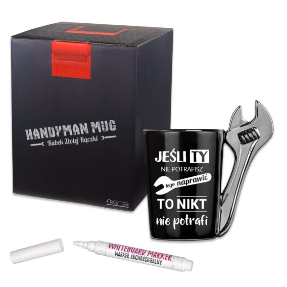 Kubek Złotej Rączki w kształcie klucza + mazak