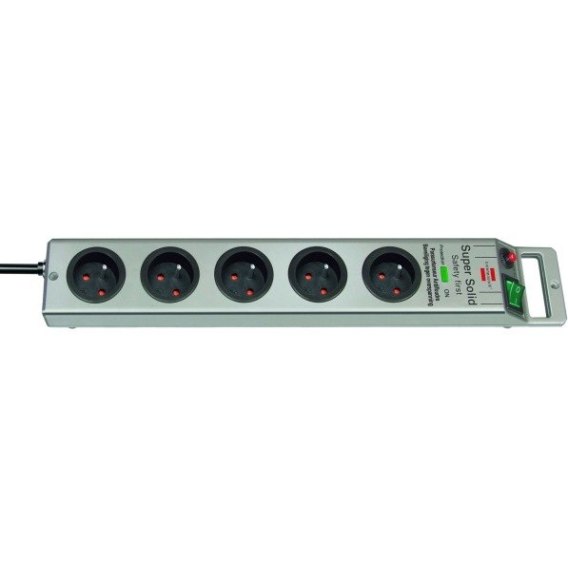 LISTWA ZASILAJĄCA 5 GNIAZD PRZECIWPRZEPIĘCIOWA BRENNENSTUHL "SUPERSOLID" SREBRNA 2.5 M