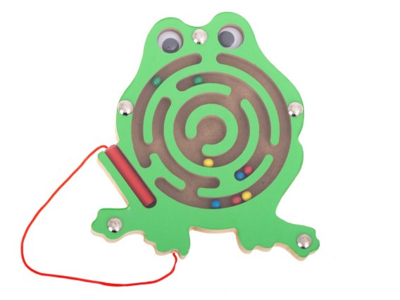 W sympatycznej żabce został zamknięty labirynt z metalowymi kuleczkami.