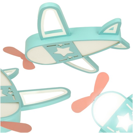 Plafon LED w kształcie samolotu rozjaśnia przestrzeń, pozwalając poczuć w domu klimat podniebnej przygody. Podkreśli bajkowy wygląd pokoju dziecięcego, tworząc bezpieczne otoczenie do nauki i zabawy. Samolot emituje zimne, neutralne oraz ciepłe światło, które można dowolnie ustawić za pomocą pilota. Funkcja ściemniacza rozprasza zbyt intensywne światło w pomieszczeniu, tworząc klimatyczny półmrok.