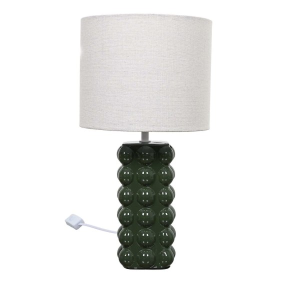 Lampka wykonana z ceramicznej podstawy oraz abażuru z tkaniny to idealny element wystroju, który swoim rozproszonym światłem doda nastroju w salonie lub sypialni. Lampka z gwintem na żarówkę E27 (brak w zestawie) wyposazona jest w przewód o długości 120cm z włącznikiem.