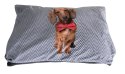 Kołderka z miękkiej tkaniny, uszyta luźno, tak, żeby pies nie miał kłopotu wejść pod nią sam. Wkład do poduszki wyjmowany, poszewkę można wyprać w pralce.