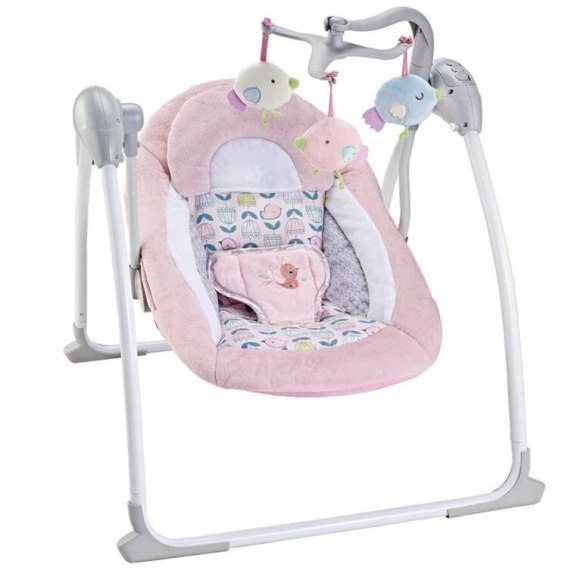Obicie siedziska jest ściągane przez co łatwo utrzymać je w czystości, co jest szczególnie ważne przy niemowlętach. Nad leżaczkiem zawieszone są trzy urocze, pluszowe maskotki, które przyciągną uwagę dziecka, a z czasem maluch chętnie będzie po nie sięgał, ćwicząc motorykę małą. Leżaczek można zablokować, by pełnił jednie funkcję siedziska. Metalowe rurki zastosowane w stelażu są gwarancją stabilności konstrukcji. Całość utrzymana jest w stonowanej, szaro-różowej kolorystyce, dlatego leżaczek będzie pasować do każdego dziecięcego pokoiku.