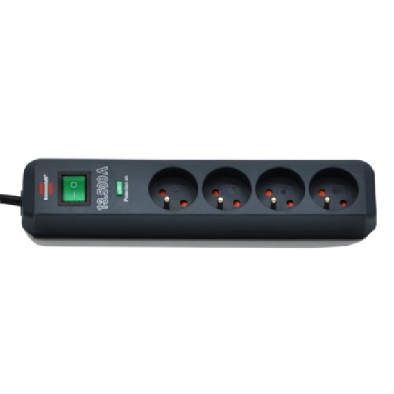 Listwa przeciwprzepięciowa linii Eco Line w kolorze antracytowym posiada 4 gniazda, ochronę do 13,500A, kabel o długości 1,5m i parametrach H05VV-F 3G1,5: ✓ 4 gniazdowa listwa przepięciowa z uziemieniem, ochroną Child Protect i kablem o długości 1,5m. ✓ Chroni podłączone urządzenia przed przepięciami o mocy do 13.500 A. ✓ Lampka informująca o aktywnej ochronie antyprzepięciowej. ✓ Podświetlany, nieoślepiający włącznik. ✓ Brennenstuhl