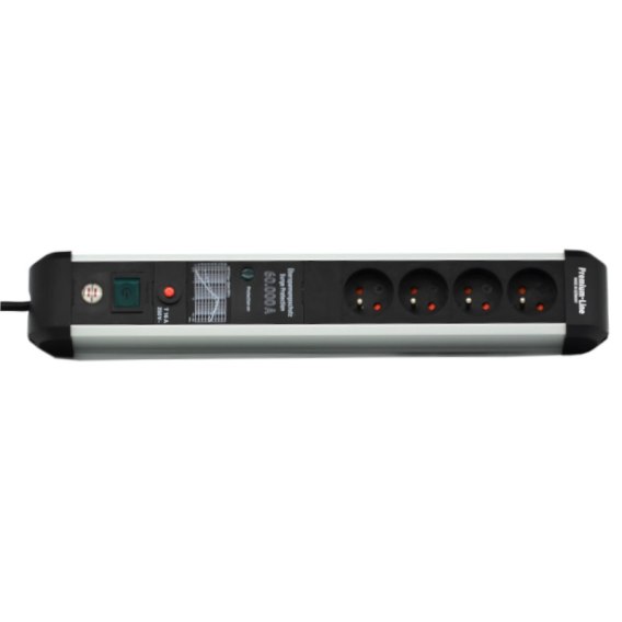 Listwa przeciwprzepięciowa Premium Protect line w kolorze czarno-srebrnym posiada 4 gniazda typu E, kabel o długości 3m i parametrach H05VV-F 3G1,5: ✓ 4 gniazdowa listwa przeciwprzepięciowa z uziemieniem, ochroną Child Protect i kablem o długości 3m. ✓ Chroni podłączone urządzenia przed przepięciowymi o mocy do 60.000A, które ochronią cenny sprzęt przed skokami napięcia czy wyładowaniami atmosferycznymi. ✓ Wbudowany filtr EMI/RFI niwelujący zakłócenia radiowe i elektromagnetyczne. ✓ Bezpiecznik automatyczny T16A/230V. ✓ Możliwość zamontowania listwy na ścianie bądź nodze stołu dzięki wykorzystaniu nowoczesnej koncepcji montażu. (zdjęcie nr. 4). ✓ Podświetlany włącznik. ✓ Brennenstuhl.