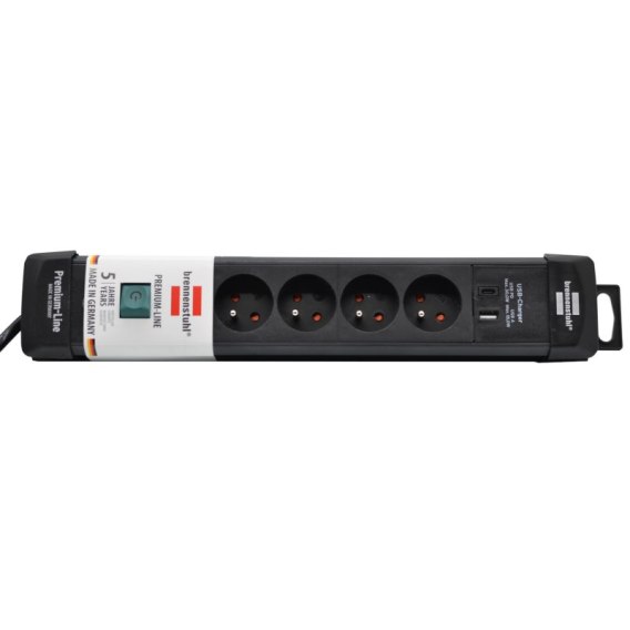 Listwa zasilająca Premium Line w kolorze czarnym posiada 4 gniazda typu E, dwa gniazda USB A i C, kabel o długości 1,8 m i parametrach H05VV-F 3G1,5 : ✓ 4 gniazdowa z 2 gniazdami ładowania USB, z uziemieniem, ochroną Child Protect i kablem o długości 3m . ✓ Łączny prąd ładowania w gniazdach USB maks. 3100mA. ✓ Innowacyjny system zawieszania do montażu na ścianie i praktycznym uchwytem na kabel. ✓ Podświetlany, nieoślepiający włącznik. ✓ Brennenstuhl
