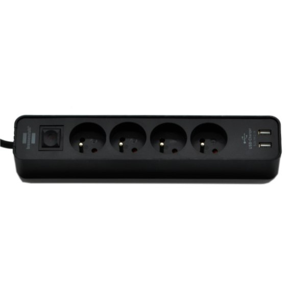Listwa zasilająca linii Ecolor w kolorze czarnym posiada 4 gniazda typu E, 2 gniazda USB, kabel o długości 1,5m i parametrach H05VV-F 3G1,5: