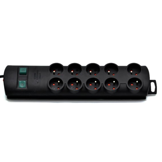 Listwa zasilająca linii Primera Line w kolorze czarnym posiada 10 gniazd, kabel o długości 2 m i parametrach H05VV-F 3G1,5: ✓ 10 gniazdowa listwa z uziemieniem, ochroną Child Protect i kablem o długości 2m. ✓ Dwa gniazda umieszczone w większej odległości dają możliwość podłączenia dużych adapterów. ✓ Uchwyt i praktyczne otwory w obudowie które umożliwiają zawieszenie listwy na ścianie ✓ Miejsce na schowanie nadmiaru kabla z tyłu listwy. ✓ Podświetlane, nieoślepiające włączniki. (dwa wyłączniki, każdy dla 5 gniazd). ✓ Brennenstuhl