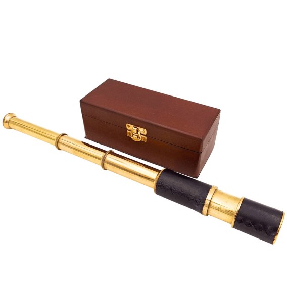 Luneta mosiężna w pudełku to idealny upominek dla mężczyzny, podróżnika, żeglarza lub pasjonata dawnych instrumentów optycznych. Świetnie sprawdzi się jako rekwizyt fotograficzny, dekoracja biura, gabinetu kapitańskiego czy stylowego salonu.