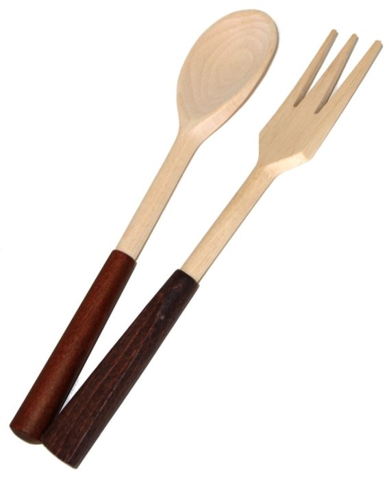 Komplet drewnianych sztućców z elegancką brązową rączką - łyżka i widelec