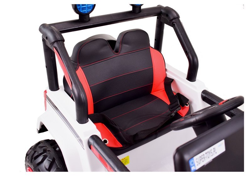 Rodzice mają pełną kontrolę nad jazdą Pociechy - w każdej chwili mogą zareagować pilotem na jazdę swojego Dziecka ( w innych modelach jest możliwa jazda na zdalnym sterowaniu tylko po przełączeniu włącznika R/C, tutaj takiego przełącznika nie ma). Dzięki właśnie takiemu rozwiązaniu kiedy Rodzice widzą że dziecko jedzie w złym kierunku mogą natychmiast zareagować pilotem - zmienić kierunek jazdy lub w tej wersji natychmiast zatrzymać pojazd - funkcja STOP w pilocie. Dodatkowo z pilota jest możliwe ustawienie 1 z 5 prędkości jazdy. Zdecydowanie jest to jedno z najbezpieczniejszych i najlepszych rozwiązań w pojazdach na akumulator.