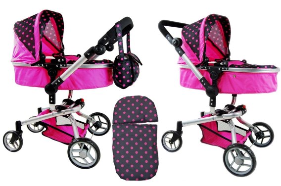 Wózek posiada skrętne kółeczka oraz przekładaną rączkę. Przekładaną gondolę z regulowanym  nachyleniem gondoli.Wielki wózek  16 funkcji z regulowaną oraz przekładaną  rączką, skrętnymi kółeczkami,koszyczkiem i torbą oraz kilkoma możliwościami konfiguracji.