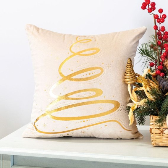 METALICZNA CHOINKA Poszewka dekoracyjna VELVET, 40x40cm, kolor 057 kremowy ze złotym zdobieniem TBN003/POP/057/040040/1