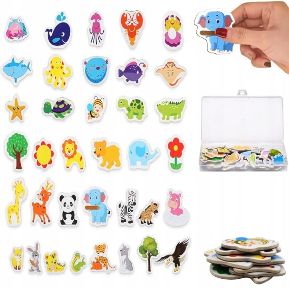 • Uczą się rozwijać wyobraźnię i kreatywność. Dzieci mogą zawieszać magnesy na lodówce bądź innych metalowych powierzchniach, ucząc się podziału zwierząt na obszar zamieszkania. Mogą również układać swoje własne historyjki z udziałem zwierzątek.