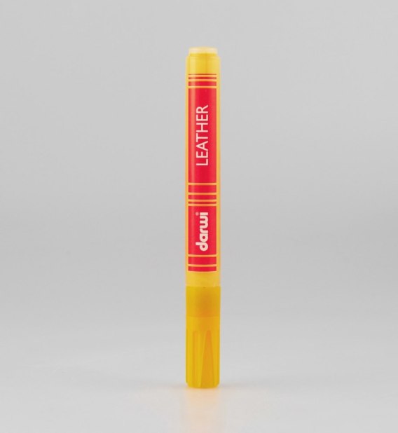 Żółty marker do malowania na przedmiotach skórzanych. Idealny do ozdobienia w fantazyjne wzory starych torebek, butów, portfeli i pasków. Należy dobrze wstrząsnąć przed użyciem. Farbka na bazie wody, nie wymaga rozcieńczania. Nadaje się do malowania po jasnych i ciemnych skórach, również sztucznych. Po wyschnięciu (48 godzin) wodoodporna, bardzo miękka i giętka. Nieodpowiednie dla dzieci w wieku poniżej 24 miesięcy. Wymiary markera H: 14,3 cm, D: 1,5 cm. Grubość linii 1,2-2 mm. Pojemność 6 ml.
